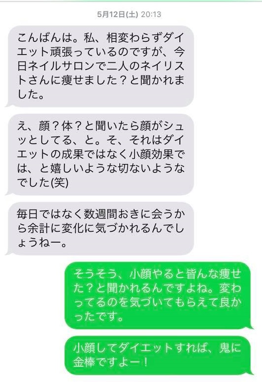 とっても色白な方でグリーンピールもしているのでかなりの美肌の持ち主ですが、小顔をし始めたらさらに肌が明るくなりました。