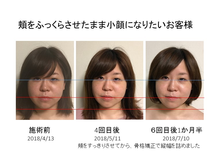 5回目の時の写真よりも6回目の施術後、1か月半経った写真の方がさらにお顔がスッキリしています。