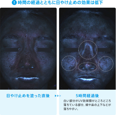 フランスの化粧品メーカー、ラロッシュポゼのサイトで、日焼け止めを塗った直後と、5時間経過後の写真が出ていました。